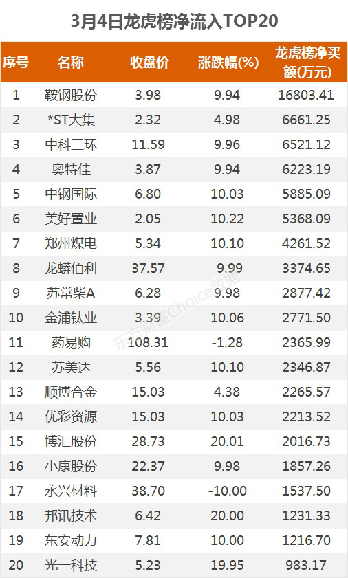 龙虎榜:1.7亿资金抢筹鞍钢股份 机构净买这9股