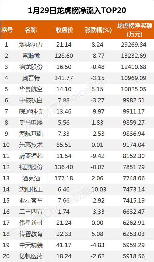 龙虎榜:主力2.93亿抢筹潍柴动力 机构最爱博迁新材 2024-07-31 21:27:17 摘要【龙虎榜:主力2.93亿抢筹潍柴动力 机构最爱博迁新材】1月29日A股指数午后持续走弱,尾盘跌幅收窄,个股普跌,跌幅超9%个股近70家,市场亏钱效应进一步扩大。 最新价:21.14涨跌额:1.61涨跌幅:8.24%成交量:195万手成交额:40.8亿换手率:4.60%市盈率:17.7总市值:1677亿查询该股行情 实时资金流向 深度数据揭秘 进入潍柴动力吧 潍柴动力资金流相关股票泰坦股份(9.06 9.95%)通用电梯(13.22 8.45%)大叶股份(32.4 7.64%)亚威股份(5.06 5.64%)相关板块HS300_(-0.63%)深证100R(-0.70%)AH股(-0.92%)MSCI中国(-0.94%)行情火热!两市成交额接连破万亿!速去东方财富APP布局新机会>>1月29日A股指数午后持续走弱,尾盘跌幅收窄,个股普跌,跌幅超9%个股近70家,市场亏钱效应进一步扩大。整体看,市场情绪全天冰点,耐心等待市场企稳。盘面上,注册制次新、机场航运、旅游等板块涨幅居前,石墨电极、煤炭、快手等板块跌幅居前。截至收盘,沪指跌0.63%,报收3483点;深成指跌0.61%,报收14821点;创业板指跌1.04%,报收3128点。 龙虎榜净流入TOP201月29日,上榜龙虎榜个股中,资金净流入最多的是潍柴动力,为2.93亿元。数据显示,该股日内大涨超8%,近30个交易日股价累计上涨31.80%,日内换手率4.6%。 数据来源:东方财富Choice数据机构买卖情况机构参与龙虎榜中个股共涉及26股,其中12股被机构净买入,博迁新材被买入最多,为1.26亿元。另外14股被机构净卖出,其中平冶信息卖出最多,为4919万元。 数据来源:东方财富Choice数据(文章来源:东方财富研究中心) 赞 (0) 相关推荐 三日大涨27.8%,机构还在入场,这只氢能股春天来了? 证券之星数据中心讯,沪深交易所2021年8月10日公布的交易公开信息显示,全柴动力(600218)因连续三个交易日内,涨幅偏离值累计达20%的证券登上龙虎榜.此次已是最近5个交易日中第2次上榜. 截止 ... 龙虎榜上的机会和陷阱(十三) 今天龙虎榜上榜的股比较少,而且有些我特别感兴趣的股居然没有上榜. 石化油服(600871) 之前的妖股,也有一段时间没有出现在龙虎榜上了.龙虎榜上主力出货为主,卖一卖二买三卖出5.5亿,占总成交比例的 ... 龙虎榜:主力2.5亿抢筹徐工机械 机构最爱这19股 摘要[龙虎榜:主力2.5亿抢筹徐工机械 机构最爱这19股]2月1日指数全天震荡走高,个股涨多跌少,涨幅超9%个股逾100家,短线情绪回暖,市场整体赚钱效应好转,跌停个股以业绩雷为主.盘面上,注册制次新 ... 龙虎榜:1.6亿抢筹中国宝安 机构净买17股 摘要 [龙虎榜:1.6亿抢筹中国宝安 机构净买17股]4月6日,市场全天弱势震荡,截至收盘,沪指跌0.03%,报收3483点:深成跌0.28%,报收14083点:创业板指跌0.72%,报收2831点. ... 龙虎榜:4.8亿抢筹太钢不锈 外资净买5股 机构净买15股 摘要[龙虎榜:4.8亿抢筹太钢不锈 外资净买5股 机构净买15股]盘面上,煤炭.石矿开采.石墨电极等板块涨幅居前:医美.医疗器械.半导体等板块跌幅居前. 最新价:7.67涨跌额:0.66涨跌幅:9.4 ... 龙虎榜:2.3亿抢筹太钢不锈 外资净买2股 机构净买24股 摘要[龙虎榜:2.3亿抢筹太钢不锈 外资净买2股 机构净买24股]5月6日,上榜龙虎榜个股中,资金净流入最多的是太钢不锈,为2.32亿元.数据显示,该股日内涨停收盘,全天换手率3.12%.具体看,深股 ... 龙虎榜:6.6亿抢筹赤峰黄金 外资净买15股 机构净买35股 摘要[龙虎榜:6.6亿抢筹赤峰黄金 外资净买15股 机构净买35股]5月10日,市场分化较为严重,指数午后横盘震荡,截至收盘,沪指涨0.27%,报收3427点:深成指跌0.11%,报收13917点:创 ... 龙虎榜:1.5亿抢筹仁和药业 外资净买3股 机构净买11股 摘要[龙虎榜:1.5亿抢筹仁和药业 外资净买3股 机构净买11股]5月11日,指数午后震荡回升,截至收盘,沪指涨0.40%,报收3441点:深成指涨0.35%,报收13966点:创业板指跌0.01%, ... 龙虎榜:2.4亿抢筹润和软件 外资净买10股 机构净买18股 摘要[龙虎榜:2.4亿抢筹润和软件 外资净买10股 机构净买18股]5月13日,指数全天低开震荡,截至收盘,沪指跌0.96%,报收3429点:深成指跌1.05%,报收13917点:创业板指跌0.57% ... 龙虎榜:5.5亿抢筹洋河股份 外资净买4股 机构净买12股 摘要[龙虎榜:5.5亿抢筹洋河股份 外资净买4股 机构净买12股]4月29日,指数午后震荡上行,截至收盘,沪指涨0.52%,报收3474点:深成指涨0.46%,报收14464点:创业板指涨0.03%, ... 龙虎榜:2.2亿抢筹味知香 外资净买2股 机构净买11股 摘要[龙虎榜:2.2亿抢筹味知香 外资净买2股 机构净买11股]5月17日,指数全天冲高震荡,截至收盘,沪指涨0.78%,报收3517点:深成指涨1.74%,报收14456点:创业板指涨2.60%,报 ...