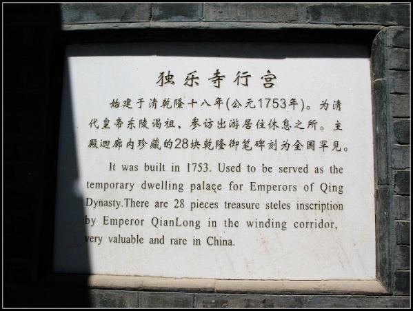 独乐寺行宫,建于乾隆十八年(1753年), 乾隆行宫牌记