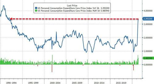 Fed's Favorite Inflation Indicator Surges To Highest Since 1991 As Savings Rate Slumps