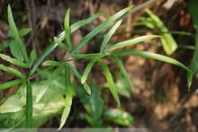 凤尾草 - 凤尾草所属类别 :植物凤尾草主要以其叶形和生态环境来命名,别名很多,如金鸡尾、鸡脚草、井栏边草等,是一种蕨类植物,属于凤尾蕨科、凤尾蕨属。学名Pteris multifda poir。喜生长在荫蔽、湿润、温暖处。也耐旱,在南方冬季,石缝中生长的植株经-二月干旱,仍不致完全枯死。主产长江流域及以南各省、区,北方的陕西、河北、山东等省也有分布。以全草入药,性凉,味微苦,归肝、肾、大肠经,具有清热利湿、凉血止血、消肿解毒等功效,用于治疗痢疾、肠炎、黄疸型肝炎、吐血、便血、尿血等病症。基本信息中文名凤尾草拉丁学名Pteris multifida Poir别称鸡脚草、金鸡尾、井口边草、井边凤尾、井栏草、凤尾蕨、五指草门蕨类植物门纲蕨纲目真蕨目科凤尾蕨科属凤尾蕨属目录1形态特征2生长环境3分布范围4栽培技术5主要价值折叠编辑本段形态特征凤尾草无地上茎,叶从根茎丛生地上,高三、五十厘米,叶分成5-7片小叶,宽1-2厘米,呈短、长带形,边缘有小锯齿,叶片两侧波状皱曲。能育叶较窄,边缘下侧着生孢子囊群,产生孢子。全丛颜色嫩绿,叶片披拂,极有风姿,配山石盆景尤妙。地栽应选背阴湿润处,可供成片、成行绿化。