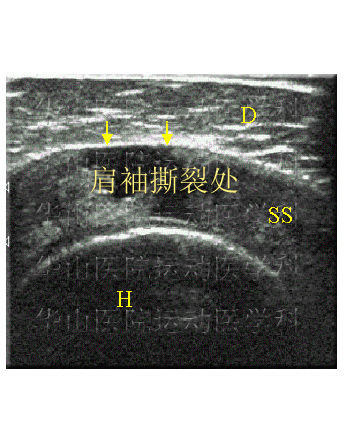 图4 超声显示肩袖撕裂