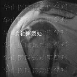 图3 MRI显示肩袖撕裂