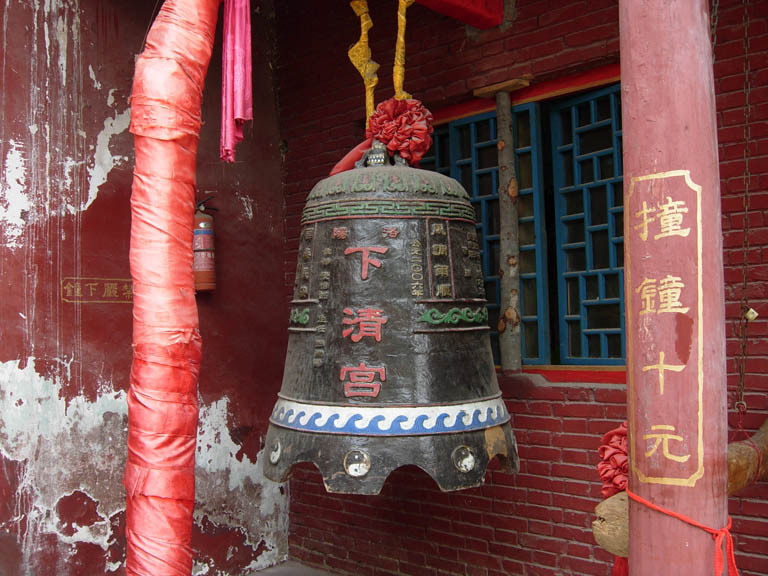 下清宫又名青牛观,仅在于它是老子拴牛处。老子拴了青牛,步上翠云峰炼丹,他的青牛在此等他。唐代建观。也许是庙观俨然吧,炼丹处也就被挪到了这里。观内布设了炼丹洞,架起了炼丹炉,立了一块八卦阴阳壁,还有一堆黄土,道是「孔子问礼台」。