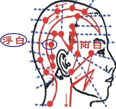 【穴意】浮是漂浮的意思,白是指白发。总起来的意思是,漂浮再头是 的白发,此穴专治白发。