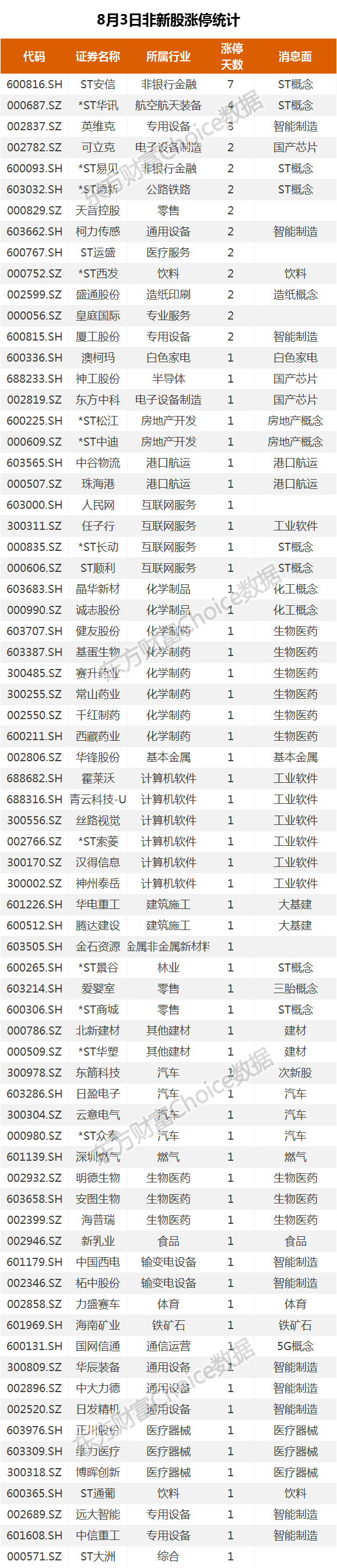 8月3日新股涨停统计