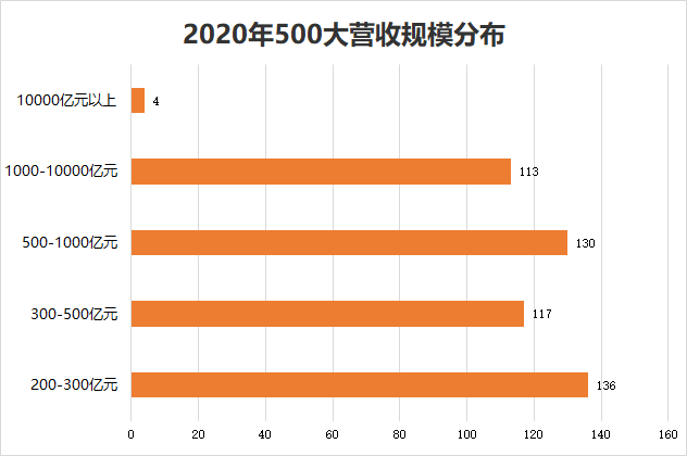 500大中,除了4家营收超1万亿的上市公司外,还有113家上市公司营收在1000-10000亿元,130家上市公司的营收在500-1000亿元,117家上市公司营收在300-500亿元之间,136家公司营收在200-300亿元。