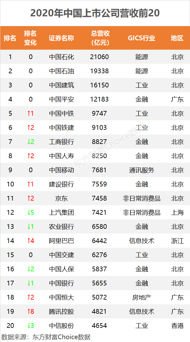 以下为2020年中国上市公司营收500大全榜单: