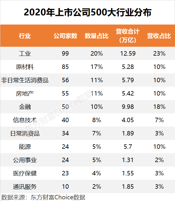 数据显示,2020年中国上市公司500大营业收入平均为1109亿元,中位数为488亿元。500大的门槛为204亿元,高于上年的192亿。