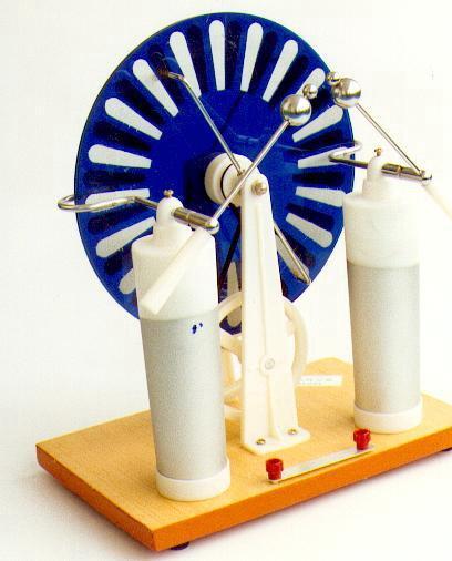 1882年,英国维姆胡斯创造了圆盘式静电感应起电机,其中两同轴玻璃圆板可反向高速转动,摩擦起电的效率很高,并能产生高电压。这种起电机一直沿用至今,在各中学的物理课堂上作电学演示实验时,就经常用到它。 起电机