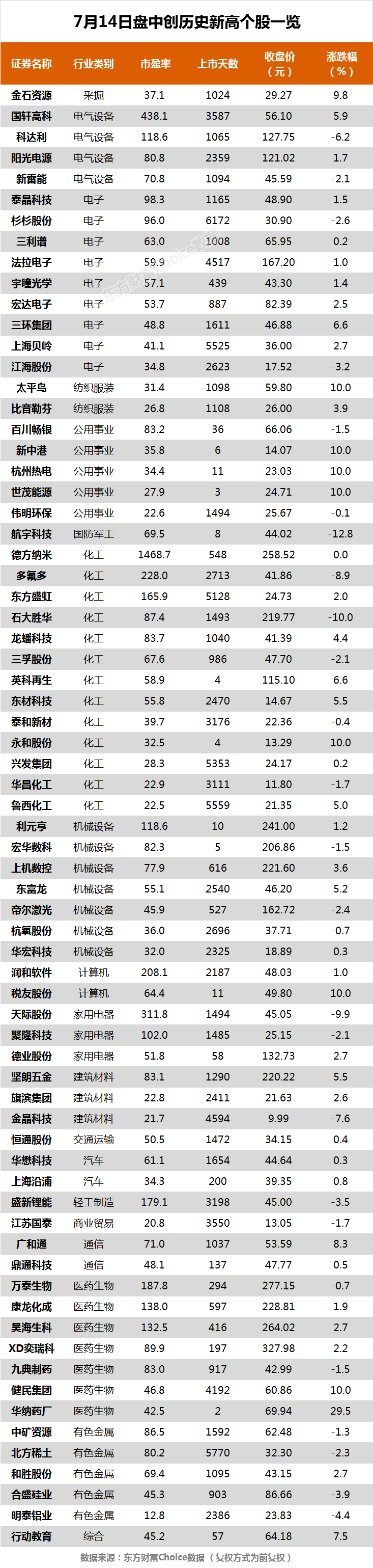 摘要【沪指跌近1% 国轩高科、盛新锂能等70股创历史新高】7月14日,沪指收报3528.50点,跌1.07%;深证成指收报15056.32点,跌0.88%;创业板指收报3488.63点,跌0.75%。东方财富Choice数据显示,今日有70只个股盘中股价创历史新高,包括国轩高科、盛新锂能等。