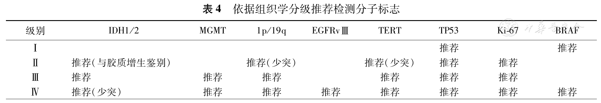 依据组织学分级推荐检测分子标志