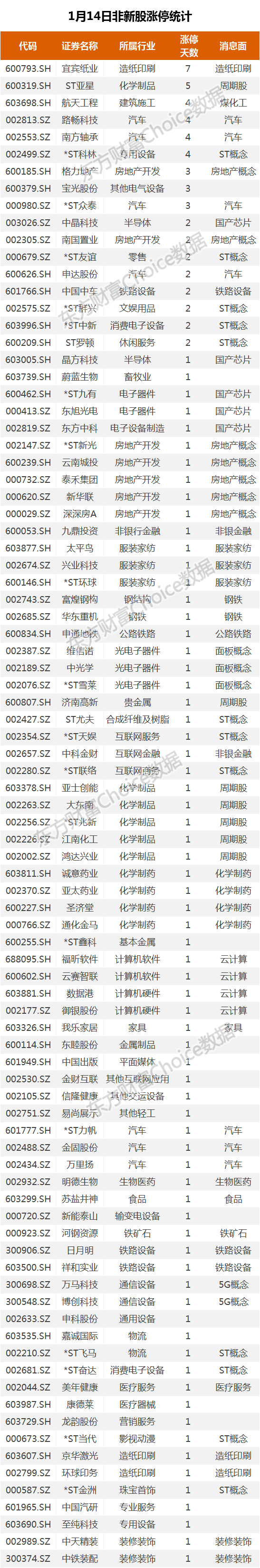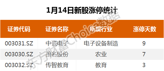 1月14日新股涨停统计