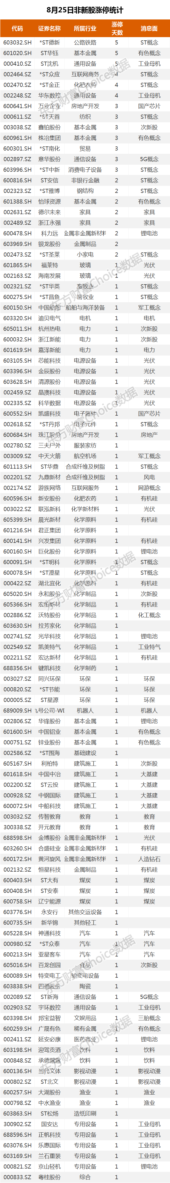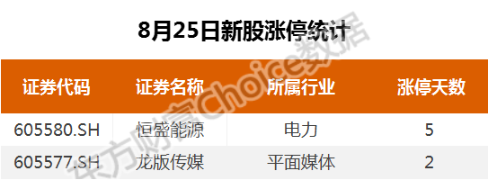 8月25日新股涨停统计