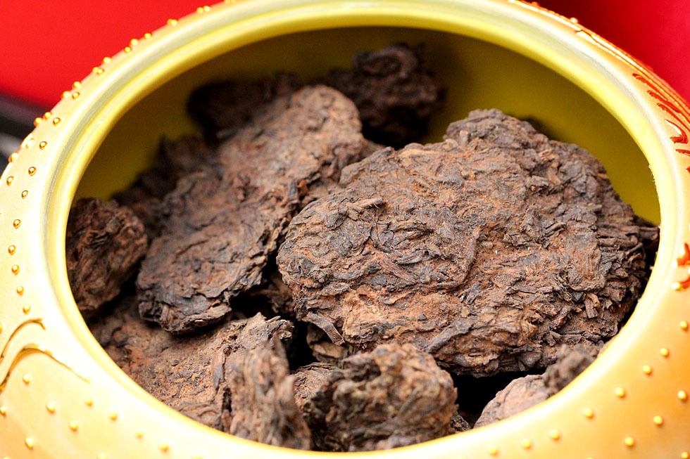 老茶头 免费编辑 添加义项名B 添加义项?所属类别 :饮品茶头是指普洱茶在渥堆发酵时结块的茶,相对条索状茶,发酵度正常范围的茶头内含物更加丰富,茶汤更浓厚,更加耐泡,但泡到最后也仍然有大部分茶头不会散开,还是粘稠在一起。普洱熟茶都是经过人工洒水渥堆发酵的,在这个发酵的过程中,一堆茶的中间会升温,然后茶叶通过自身含有的酶发酵,慢慢变成熟茶。在这个过程中,每过一段时间,就要人工把这堆茶翻几翻,以免里面温度太高把茶给焖焦。发酵过程中经过反复不断地翻,茶叶会分泌出一些果胶来,因为果胶是比较粘稠的,所以有些茶叶就粘在一起变成一团一团的疙瘩。等茶叶发酵完毕后,人们会把这些一团一团的茶叶疙瘩拣出来,用手把它解开,然后放回到茶叶堆里,而有的实在粘的太牢了,如果要解开的话会将茶叶弄碎了,只好另外放成一堆,变成了"疙瘩茶",所以也叫"老茶头"。基本信息中文名称老茶头外文名称The old tea first别名疙瘩茶特点耐冲泡,香味醇厚口感顺滑目录1简介2名称释义3臻品系列4茶品价值5老茶头的形成6老茶头的泡法折叠编辑本段简介老茶头是2006年全新奉献的茶品,时间的历练赋予了这款茶品耐冲泡,香味醇厚的特点。茶砖外形匀整,颗粒明显。品饮口感顺滑,滋味浓酽,陈香纯正显糖香,是一种无需陈放就可喝的好茶。折叠编辑本段名称释义所谓茶头即渥堆 ,便是普洱熟茶渥堆发酵时在高温高湿的环境下自然结块的茶。也称"疙瘩茶"。相对条索状茶,发酵度正常范围的茶头内含物更丰富,茶汤更浓,更经久耐泡。老,则是指存放的年限长。一般来讲,老茶头比分出级来后的各等级的散茶发酵得更重一些,并且不容易被泡散,所以相对甜度和汤水的亮度会更高。折叠编辑本段臻品系列臻品系列茶品是大益产品价值体系中的高端产品,原料源自普洱茶核心产区、澜沧江流域著名茶山,强化产地概念,原料经过一定时间醇化,品质极具个性化。折叠编辑本段茶品价值大益老茶头不再是过去理解的属于边角料衍生物的茶品,而是一种品质优良的,包含茶史、兼具内涵的时代产物。而且因其良好的口感和并不很大的产量,增值空间也较为宽广,更值得广大茶友品鉴和收藏。茶头是指普洱茶在渥堆发酵时结块的茶,相对条索状茶,发酵度正常范围的茶头内含物更加丰富,茶汤更浓厚,更加耐泡,但泡到最后也仍然有大部分茶头不会散开,还是粘稠在一起。普洱熟茶都是经过人工洒水渥堆发酵的,在这个发酵的过程中,一堆茶的中间会升温,然后茶叶通过自身含有的酶发酵,漫漫变成熟茶。在这个过程中,每过一段时间,就要人工把这堆茶翻几翻,以免里面温度太高把茶给焖焦。发酵过程中经过反复不断地翻,茶叶会分泌出一些果胶来,因为果胶是比较粘稠的,所以有些茶叶就粘在一起变成一团一团的疙瘩。等茶叶发酵完毕后,人们会把这些一团一团的茶叶疙瘩拣出来,用手把它解开,然后放回到茶叶堆里,而有的实在粘的太牢了,如果要解开的话会将茶叶弄碎了,只好另外放成一堆,变成了"疙瘩茶",所以也叫"老茶头"。 普洱茶老茶头 老茶头冲泡展示