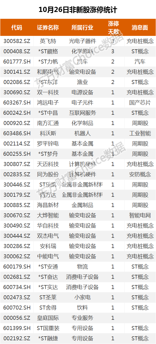 摘要【复盘37涨停股:充电桩涨停潮 英飞特3连板】10月26日指数全天下探回升,创业板指表现较强,两市个股涨跌互半,涨幅超9%以上个股近50只,其中创业板股有32只。盘面上,充电桩、智能电网、光伏等板块涨幅居前,证券、啤酒、银行等板块跌幅居前。