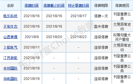 【两市停复牌一览】