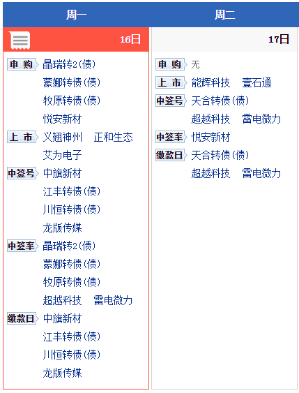 【新股日历】