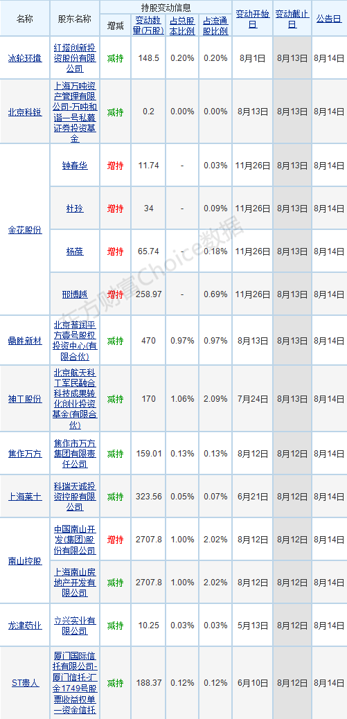 【股东增减持变动进展】