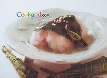 鲷鱼2片(约300公克)、梨子1颗、蛋白1个、油1大匙、香菜末少许调味料:盐1/2茶匙、太白粉少许