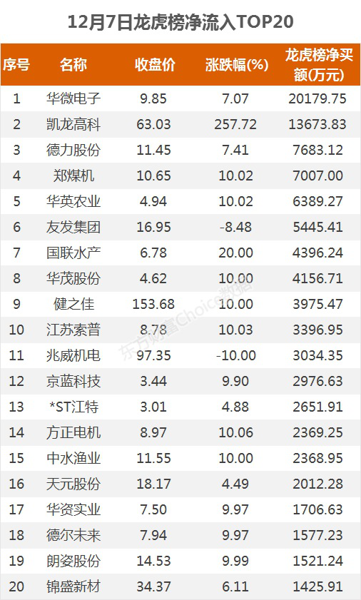 龙虎榜:2亿资金抢筹华微电子 机构净买这10股