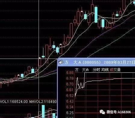 (1)000055方大A:09.3.27。涨停板当天高开4%以上,不到10点即牢牢封于涨停板,一字封板,中间未曾打开,显示主力有备而来,抬高成本价。后市短线走出符合我们12-15%的利润要求。