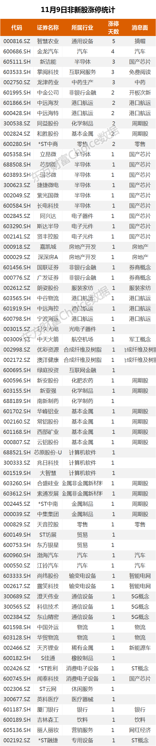 摘要【复盘70涨停股:芯片涨停狂潮 智慧农业5连板】11月9日指数全天震荡走高,创业板指涨近3%,成交量显著放大突破万亿,个股处于普涨状态,涨幅超9%个股逾百家,市场赚钱效应明显。盘面上,板块全线收红,半导体、航运、OLED等板块涨幅居前。