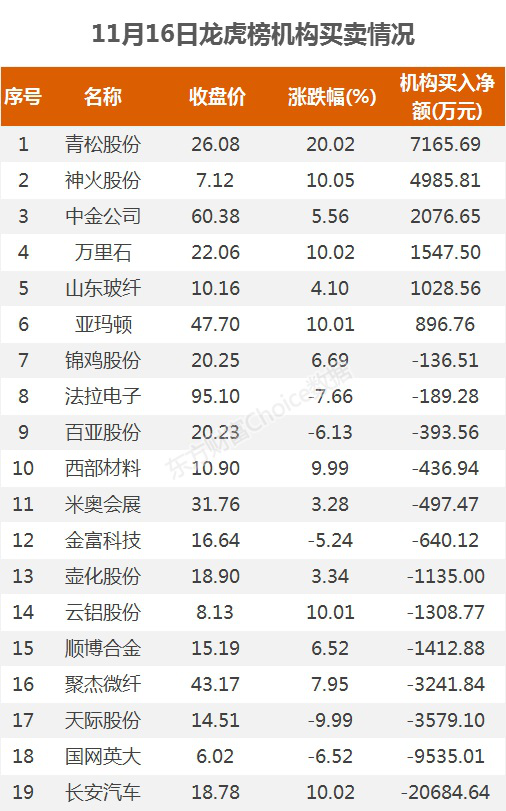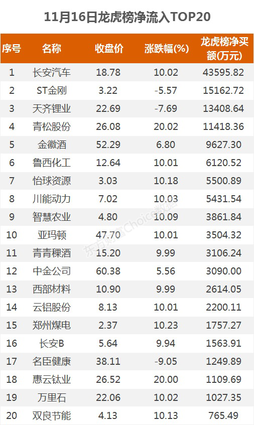 龙虎榜:4.36亿资金抢筹长安汽车 机构净买这6股