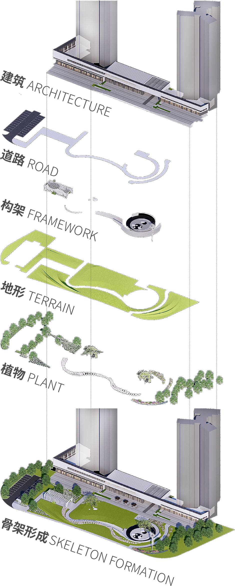 作为江湾湖光印的市政公园部分,我们希望以城市的角度看待展示区的公共景观,使其达成积极外向的状态,成为提升城市界面的一个积极的媒介;当展示区景观在满足各方面的诉求下能以非常轻松的姿态对外开放,公众能放松愉悦地参与其中,整个城市拥有越来越多的“口袋公园”的时候,我们所倡导的“园林城市”、“山水城市”也会得以实现。