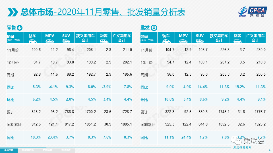 乘联会:11月份广义乘用车零售销量同比增加7.8%