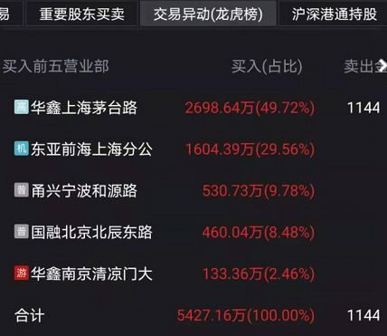 数据显示,当天净买入超3641万,其中华鑫南京清凉门大街营业部为知名游资,而华鑫上海茅台路营业部则为高频交易的游资席位。而游资在拉涨阶段,一边推高一边套现,引大批跟风资金进场接盘。当天,华鑫上海茅台路营业部在买入2698万同时,也同时卖出1144万。