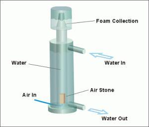 蛋白质分离器的接触表面,类似于空气和水之间的表面。举例来说,水族箱的水表面所形成的接触表面,有一定的表面张力,所以纤维素、蛋白素和食物残渣必然会在此堆积。事实上,如果扩大表面区域,例如产生气泡(制造泡沫),则会有更多的纤维素、蛋白素和食物残渣在表面自然地形成。泡沫的粘度将随着表面的增强和扩大,以及气泡的逐渐消失而改变。因此,蛋白质分离器的有效性就在于扩大气体和液体之间的表面区域以及其特定的表面张力。然而,所产生的泡沫与水族箱中水循环的排放是分离的,这也就是为何泡沫可直接由水族箱中清除废物的方法。