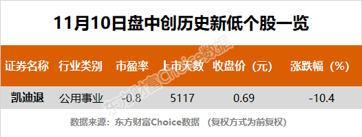 东方财富Choice数据显示,今日盘中有1只个股股价创历史新低,为凯迪退。