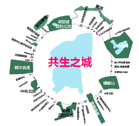 2)求同去异:遵循医学科学产业自身的发展逻辑、遵循弹性城市生长的运营逻辑、遵循以人为本的空间供给逻辑、遵循富有济南特质的生态价值逻辑。