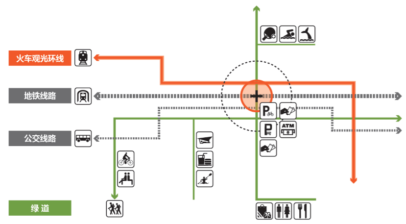 3)创意性再造:打造主城端头的慢行城市、跨界联系的边际设计、实践生态价值的泉道水城。