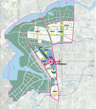规划理念:提出“自然—人—城市共同生长”的理念,通过保育和恢复良好的绿色基底,延续具有地方特色的生态线索,形成城市建设的最小干预策略;通过将自然生态有机地贯穿于城市,塑造健康而富有活力的城市环境,让城市与自然融为一体复合生长;通过生态环境建设赋予城市更高品质和价值,吸引高端企业和人才入驻,激发城市的内生活力,推动城市的高质发展。
