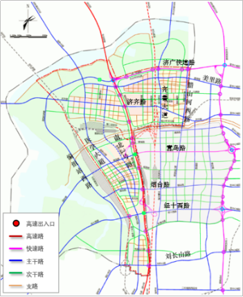 对外交通方面,强化医学中心与济南西站的联系,优化基地骨干道路,实现与济南“三环多联”高快速网无缝衔接。