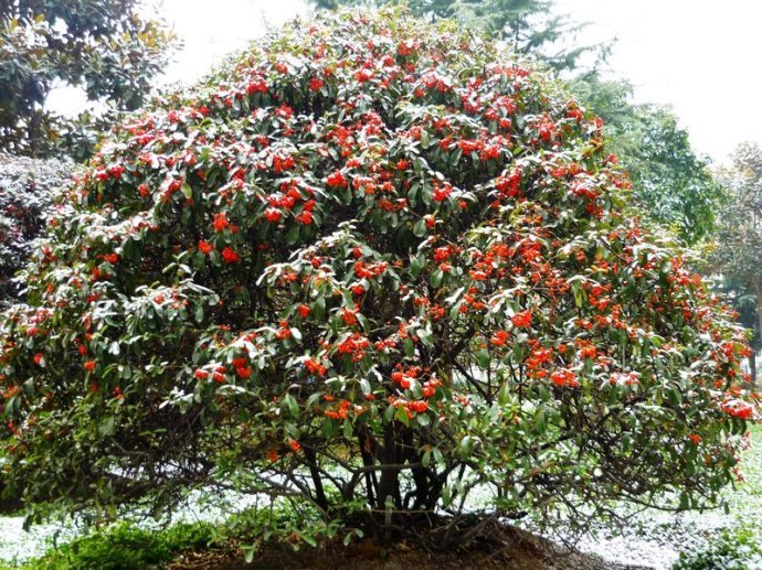 火棘作为风景林地的配植,可以体现自然野趣。