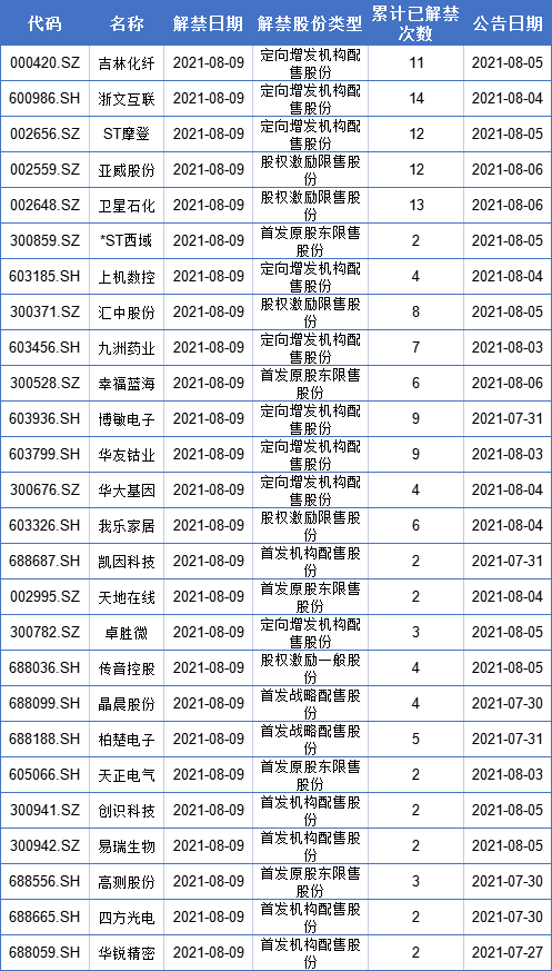 【解禁详情一览】