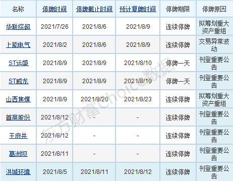【两市停复牌一览】