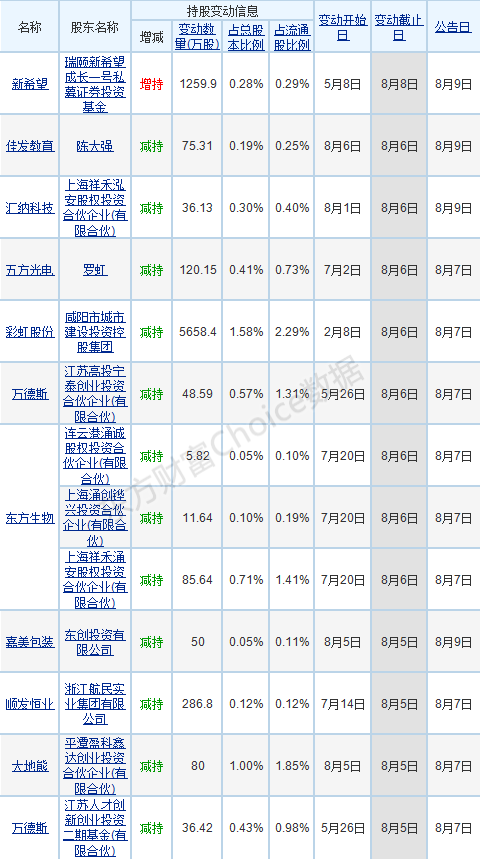 【股东增减持变动进展】