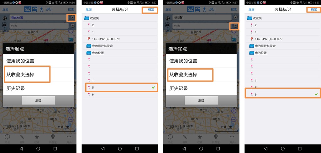 2、选择收藏夹中的标签为起止点规划路线导航