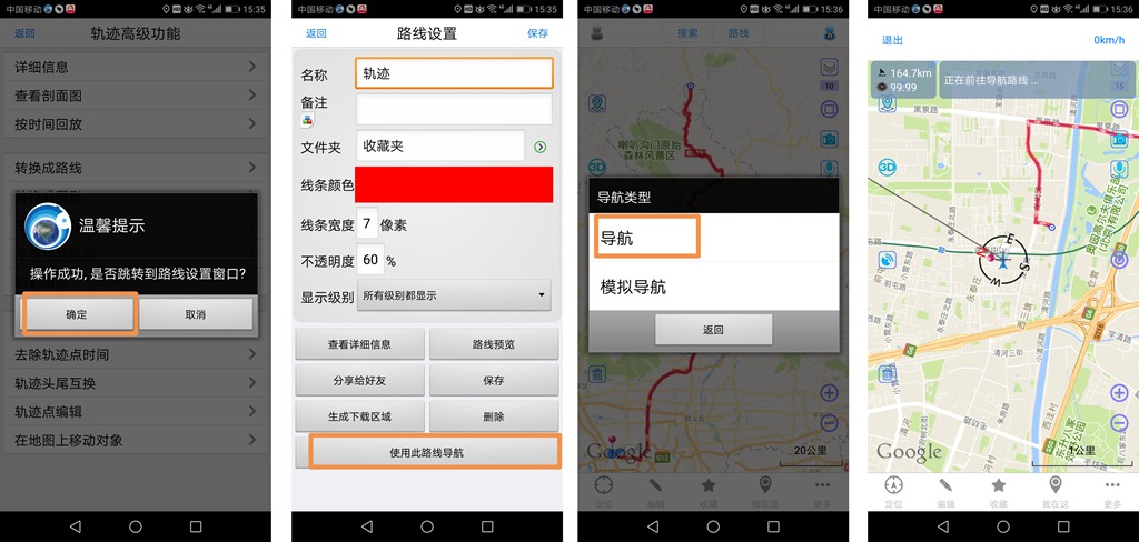 3、使用轨迹转换成路线进行导航