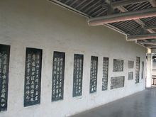 碑廊位于放鹤亭东侧,与兴化寺毗连。始建于清朝末年。南北长约30米,加上碑廊背面,总长度接近40米,廊内墙壁上镶嵌着历代碑碣54块,书体包括真、行、草、隶四体,大字如斗,小字如蝇头。另有石刻线描人物和山水画各两幅。