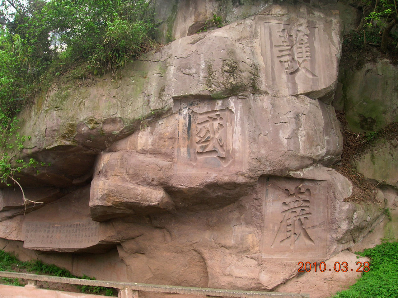 护国战争后期,蔡锷将军由于艰苦征战,喉症久病不医,病情加剧以致不能发音,只能以笔代口处理军务,便到护国军司令部所在地大洲驿叙蓬溪附近的永宁河渔舟中养病将息。永宁河畔,翠竹夹岸,岩石壁立,山河依旧,顿阅兴亡。蔡锷将军感慨系之,挥毫题写"护国岩"三字,并撰《护国岩铭》及序文,命人镌刻于永宁河岸的峭壁之上,永为纪念。著名的四川诗人吴芳吉在他的长诗名篇《护国岩词》中赞曰:"护国岩,护国军,伊人当日此长征,五月血战大功成,一朝永诀痛东瀛!伊人不幸斯岩幸,长享护国名。"这首《护国岩词》在上世纪四十年代被选入中学国文课本,广为传诵,护国岩也因此名声远播。 1991年,护国岩题刻被四川省人民政府列为重点保护文物。[26]