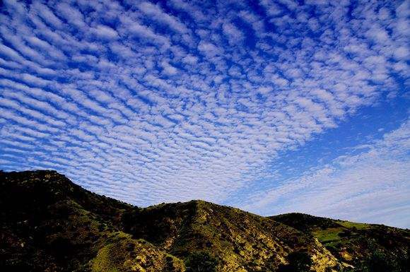 鱼鳞云是指云间有规则的、空隙大的大范围云层。出现这种云层是天气将转晴并且有两三天万里晴空的征兆。原因是高空冷空气下沉冲破了连续的云层,从而形成了鱼鳞云。冷空气下沉到地面受热,空气中的水分蒸发,相对湿度降低,气压升高,云层也升高(关键词:云层悬浮在等密度的流体中)从而出现连续晴天。这样的云层一般出现在秋天。 也即将出现秋高气爽的征兆。