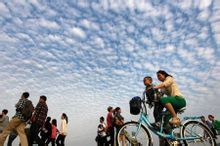 2013年5月4日,浙江杭州西湖断桥上空出现了鱼鳞云,吸引众多市民和游客驻足观赏。