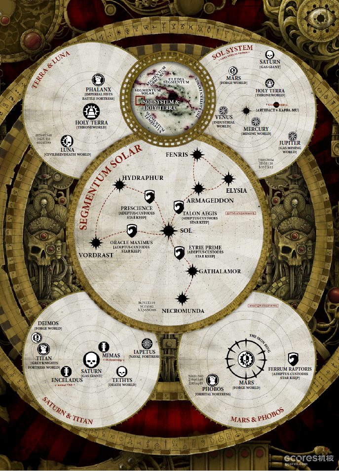阿奇查 第谷尔阿奇查 第谷尔已经当了超过一千年的特使。他是被称为真理传播者的禁军守望者小队中的一员。他以自己的卫戍连红肩甲和灰白袍为荣。正是他对于帝皇旨意的理解指引机械修会探索远征在伽马墓穴世界恒进行考古挖掘。也是他,干掉了十数个声称拥有强大科技的兽人。当大裂隙爆发时,他们正好抵达泰拉,他们是第一批赞成不屈远征的人。太阳堡垒过去太阳系被大规模入侵是不可想象的。随着大裂缝的出现,那已成为了历史。现在的太阳系仍然拥有银河系中最强大的工事,由最坚定的士兵驻守着,被科技与信仰保护着。其中最关键的部分还是禁军。如果一些很勇敢或者很愚蠢的人入侵太阳系,他们会发现他们在到达曼德维尔点之前就遭受了攻击,这个点是一个星系外可以从亚空间进入实体世界的安全区域。这个星系的晕带上部署着大量的堡垒,这些堡垒被星界军驻守并在固定的位置停泊好。在这个星系的外围散布着大量的空雷,隐藏着监视系统和巨大,可怕的空间硬化猎手机仆。如果入侵者可以通过这些阻拦,那么他们在深入时会遇到更大的阻拦。太阳舰队的战舰在黑暗中巡逻,她们的阴影象征那些入侵者的死亡。监视圣堂,要塞港,战机基地,武器平台部署在黑暗之中,她们就像闪烁地人工星座。灰骑士,审判庭,机械修会都参与太阳系的防御,他们的防线极其凶猛。此外,在基里曼的王座世界法令之后,泰拉和她的姐妹世界获得了比之前更好的防御。再加上太阳守望还有帝拳停泊在地球轨道上的山阵号,显然太阳系是不可攻破的。然而黄金王座仍然一些微小的威胁,这些就需要时刻警惕着的禁军来解决。从帝国的各地有无数的朝圣者,商人,官僚,精英,狂徒,使者,难民或是其他人来到太阳系。成千上万的船只从亚空间里飞出,进入那些通向金星,火星,木星,月球,甚至是泰拉的航道。太阳系中的每一个星球和卫星,除非因为一些特殊原因,都被轨道平台和星港所环绕,而她们的地表都被复杂延伸的线路,工厂和城市一样的堡垒所覆盖。无休止的人流涌入其中。在这些人当中,混在着叛乱,煽动,异端的种子。消除这些人就是审判庭的工作了,而且很多下属修会的特工也倾其一生来干这个工作。然而这些帝国虔诚的仆人也不能保证不被邪说,异端还有异形腐蚀。因此禁军一直存在,并在太阳系里执行着自己的巡逻与清理的任务。他们监督着每天经过泰拉的庞大舰队和人流。这是他们制定的不超过他们对危险直觉的太阳系防御检查。禁军散布监听器械,间谍机仆还有窃听程序在王座世界的巢都中。他们从太阳系的各处甚至是最黑暗的深渊中收集各种情报,将船名,人口移动,劳工日程,煽动的演讲,拦截的通讯以及更多信息录入战列舰一般大小的巨型沉思者之中。这些经过巨大引擎整理的数据将会知道禁军元帅的指挥,并帮助万夫团保持警惕。