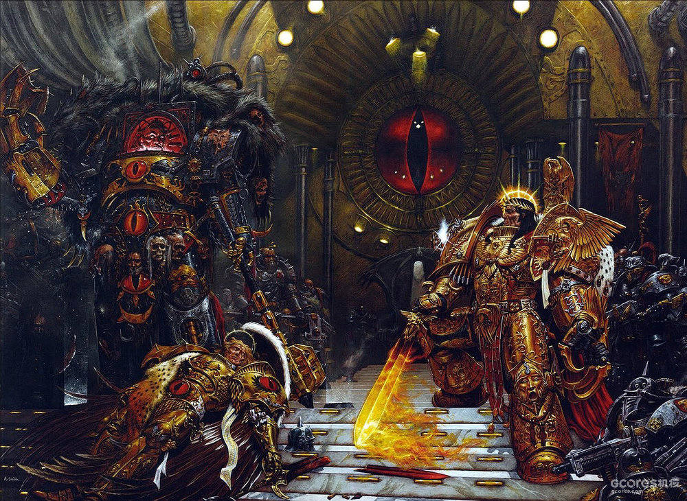荷鲁斯之乱人类的命运似乎在帝皇的统治下会走向光辉,但是事实并非如此。在最大的叛乱中,一半的基因原体带领着星际战士背叛了帝皇,并开始了人类有史以来最凶残的内战。这就是荷鲁斯之乱,这场惨剧遍布了银河。基因原体是帝皇基因造物的巅峰,创造者本意想让他们带领军队征服群星。在混沌黑暗之神的阴谋之下,他们还未长成就被分散在银河各地,最终他们又和帝皇团聚,获得了以他们为原型的星际战士军团。可以说他们中最伟大的人就是荷鲁斯 鲁波尔克。他是帝皇和禁军最先找到的基因原体,他率领他的月狼军团和帝皇并肩作战。在乌兰诺胜利之后,荷鲁斯成为了战帅,继续带领兄弟们远征,而帝皇和禁军则返回泰拉进行秘密活动。尽管荷鲁斯富有潜力,但是他还是被邪神所诱惑,被邪神所腐蚀,还带走了一半的兄弟。荷鲁斯之乱,一个一生都讲不完的大事件,将新生的帝国摧毁,扔在叛乱之火中燃烧。值得注意的是,不只星际战士在互相争斗,帝国军和机械教内部也都产生了内乱,但是禁军却没有出现在这些战斗中。从那个时代遗留下来的资料暗示,在帝国的视野外进行着另一场战争,而且只有禁军才能在这场战争中获胜。不过在这个动荡的年代,禁军还是参与了两次战争,一次是普罗斯佩罗之焚,那个可怕时代的第一场战争,另一次是皇宫围城战。普罗斯佩罗的事件甚至发生在荷鲁斯正式宣布叛变之前。这是一个惩罚活动,目的是惩罚巫师原体红魔马格努斯和他任性的千子军团。在他们遥远的家乡普罗斯佩罗,千千万万的人不顾一切地使用灵能,丝毫不在乎尼卡亚条令。没有人知道是什么让帝皇会亲自干预,但是一些零散的消息说明泰拉上的灵能意外和马格努斯的力量脱不开干系。不管事实如何,康斯坦丁带着禁军去普罗斯佩罗要将马格努斯带回泰拉交给帝皇审判。禁军早期携带Magisterium Lex Ultima,这是他们向帝皇负责的标志。他们在此之前从未接受过如此艰巨的任务。不过瓦尔多并没有逃避他的职责。当黎曼鲁斯率领太空野狼加入瓦尔多的队伍时,这场外交变为了一场屠杀。在荷鲁斯花言巧语地哄骗和黎曼鲁斯对这个巫师原体的讨厌之下,生擒马格努斯变为了一场屠杀。尽管瓦尔多极力反对鲁斯的做法,但是当普罗斯佩罗巫师的放荡被揭露之后,瓦尔多拉着他的金甲弟兄们下到了这个该死的世界。禁军和寂静修女并肩作战,禁军们击杀了马格努斯的很多追随者。在禁军的帮助下,太空野狼在亚空间裂缝席卷普罗斯佩罗之前从屠杀中解脱出来。普罗斯佩罗这件事的后果是令人困惑且不确定的。相比之下,当荷鲁斯的叛军打到王座世界的时候,战线的位置是毫无疑问的了。在那次围城战之中,禁军和忠诚军团为了保护皇宫和帝皇而战。他们对那些叛徒没有丝毫怜悯。他们没有动摇,即使燃烧的天空上满是死亡的象征,即使可憎之物飘过现实世界的面纱,即使叛变的泰坦使用强大的武器锤击着皇宫的高墙。瓦尔多和他的万夫团弟兄们英勇地战斗,一次又一次击退敌人的攻击。尽管他们十分英勇,但是在最后的时刻,他们还是失职了,并感到永恒的耻辱。所有的围攻战荷鲁斯都在他的旗舰复仇之魂号看着,他协调着这最后的战斗。然而在最后,当叛徒们在横扫宫殿外围之时,荷鲁斯放下了战舰的护盾。没有人知道他为什么这么做,可能是他尚存一丝旧的自我,希望破坏邪神的计划,也可能是他想亲自了结帝皇。不管怎样,帝皇召集了基因原体,星际战士,禁军,并带领他们对荷鲁斯的战舰展开攻击。随之而来的是可怕的战斗,帝皇的部队散布在荷鲁斯的船上,各自为了生存而战。圣吉列斯,血天使的原体,倒在了荷鲁斯之爪上,而且禁军也无法克服荷鲁斯的超自然力量。只有帝皇能够打败这个叛变的基因儿子,但是胜利的代价是巨大的。荷鲁斯击碎了帝皇的肉体,给他留下了一个残破的躯壳。人类之主被永远禁锢在黄金王座之上,利用科技延续他的生命。这种情况下,他利用他强大的精神力继续领导帝国保护人类,如果他死了,那么人类也就完了。