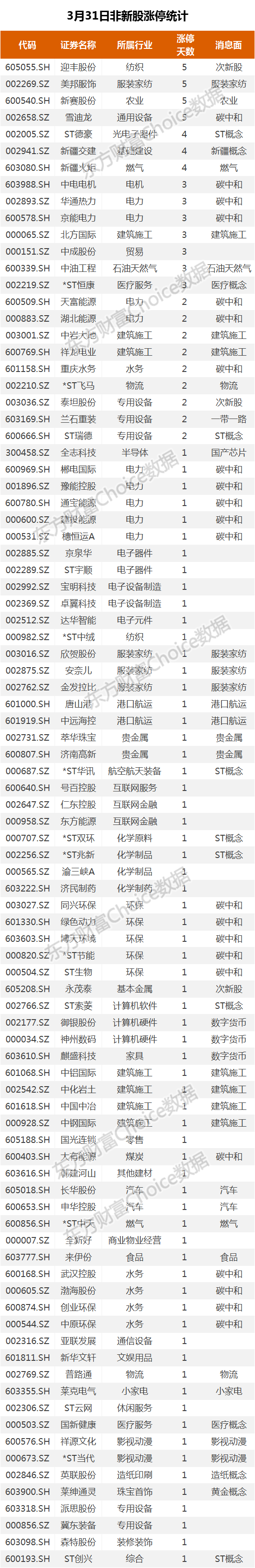 其他股涨停股统计